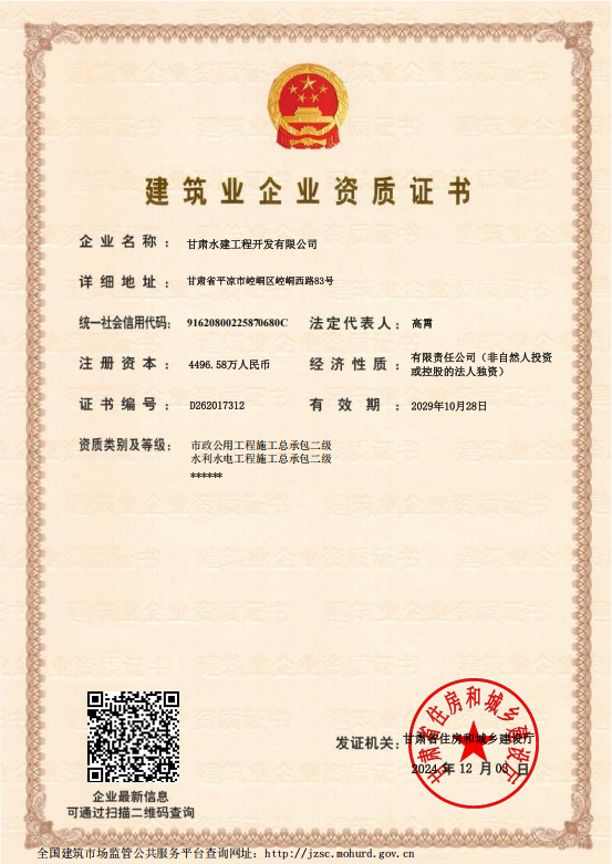 2024-12-05近日,产投集团下属企业水建公司申请的市政资质已顺利获得许可。市政资质许可是衡量企业在市政工程领域综合实力的重要标准,涵盖城市道路、桥梁、排水、照明等多个领域。水建公司具备承接各类市政工程项目的资格,且在企业资产、专业技术人员、技术装备以及工程业绩等方