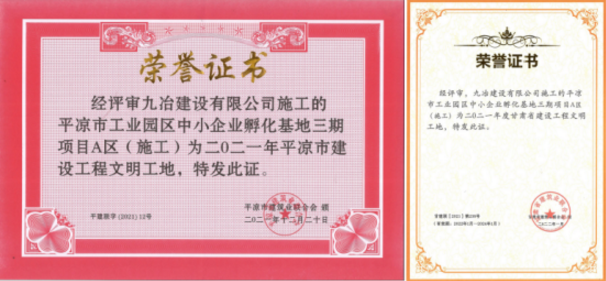 2022-03-02近日,平凉市建筑业联合会三届四次会议圆满召开,会议宣布了2021年度平凉市建设工程“三优一文明”获奖项目并颁发了省市级建设工程获奖荣誉证书,bw必威西汉姆联官方网站承建的平凉工业园区中小企业孵化基地(三期)项目A区获评“平凉市建设工程文明工地”和“甘肃省建设工程文
