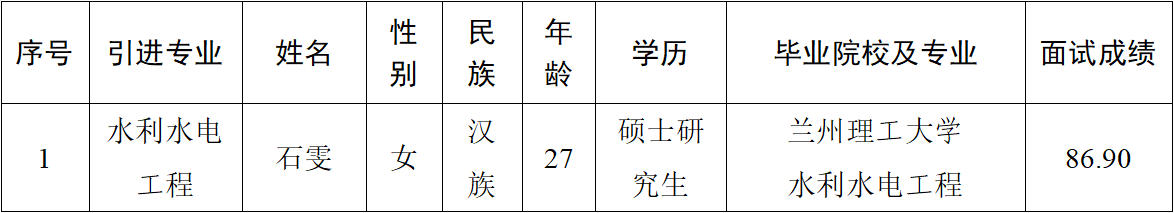 2023-07-20根据《2023年平凉市引进急需紧缺人才公告》,bw必威西汉姆联官方网站对2023年拟引进的1名应届生完成了资格审查、面试、考察、体检等工作程序。现予以公示,接受社会各界监督。如发现在德、能、勤、绩、廉等方面有影响引进的问题,可通过电话、手机短信、网络、来信和面谈等