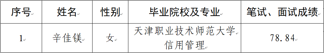 2023-09-03根据《平凉市2023年就业见习岗位公告(第四期)》,经组织报名、资格审查、笔试、面试、考察、体检等程序,拟确定辛佳镁同志为见习对象,现予以公示。一、公示对象简要情况二、公示和受理反映时间公示时间:2023年9月4日至9月8日,共5个工作日受理时间:每